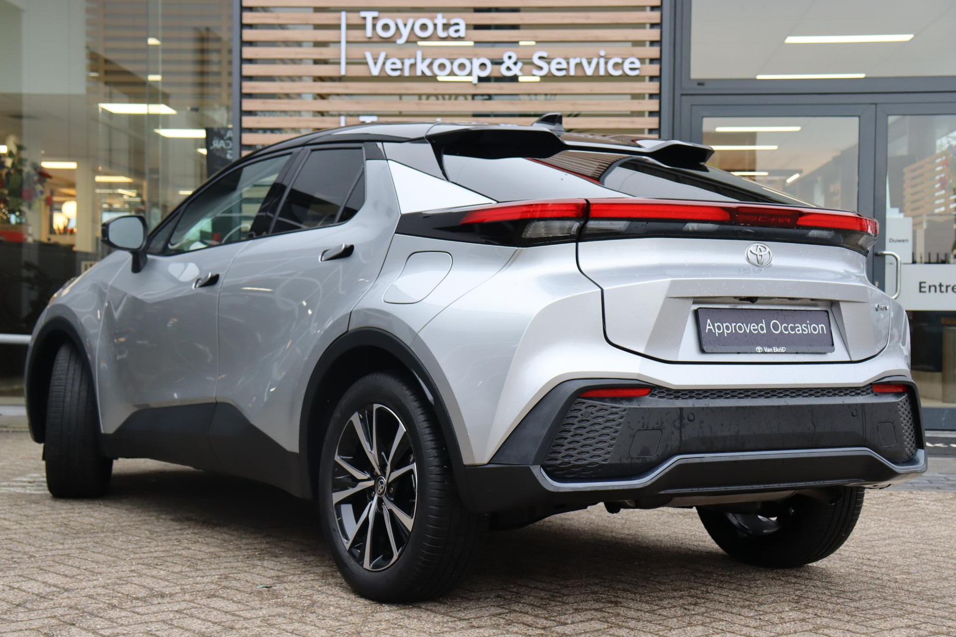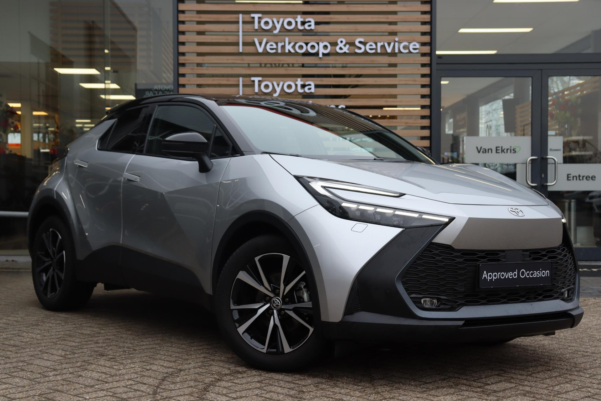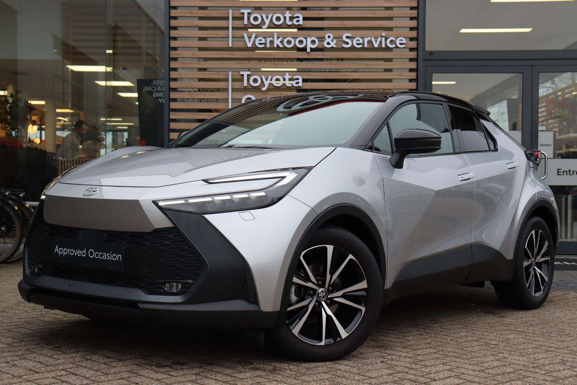 Jonge CHR 1.8 Hybrid 140 PK First Editon Limited in de kleur Shimmering Silver metallic met zwarte bovenzijde. Voorzien van onder andere Blind Spot Monitor, stuur- en stoelverwarming, volledig LED verlichting, parkeersensoren voor en achter, elektrische achterklep, draadloze telefoonlader, Apple Carplay/Android Auto, Adaptive Cruise Control, Keyless satart/Entry, navigatie, regensensor, 360 graden camera, voorruitverwarming (ruitenwissergedeelte), koplampsproeiers en meer! U bent welkom voor een proefrit met deze C-HR!