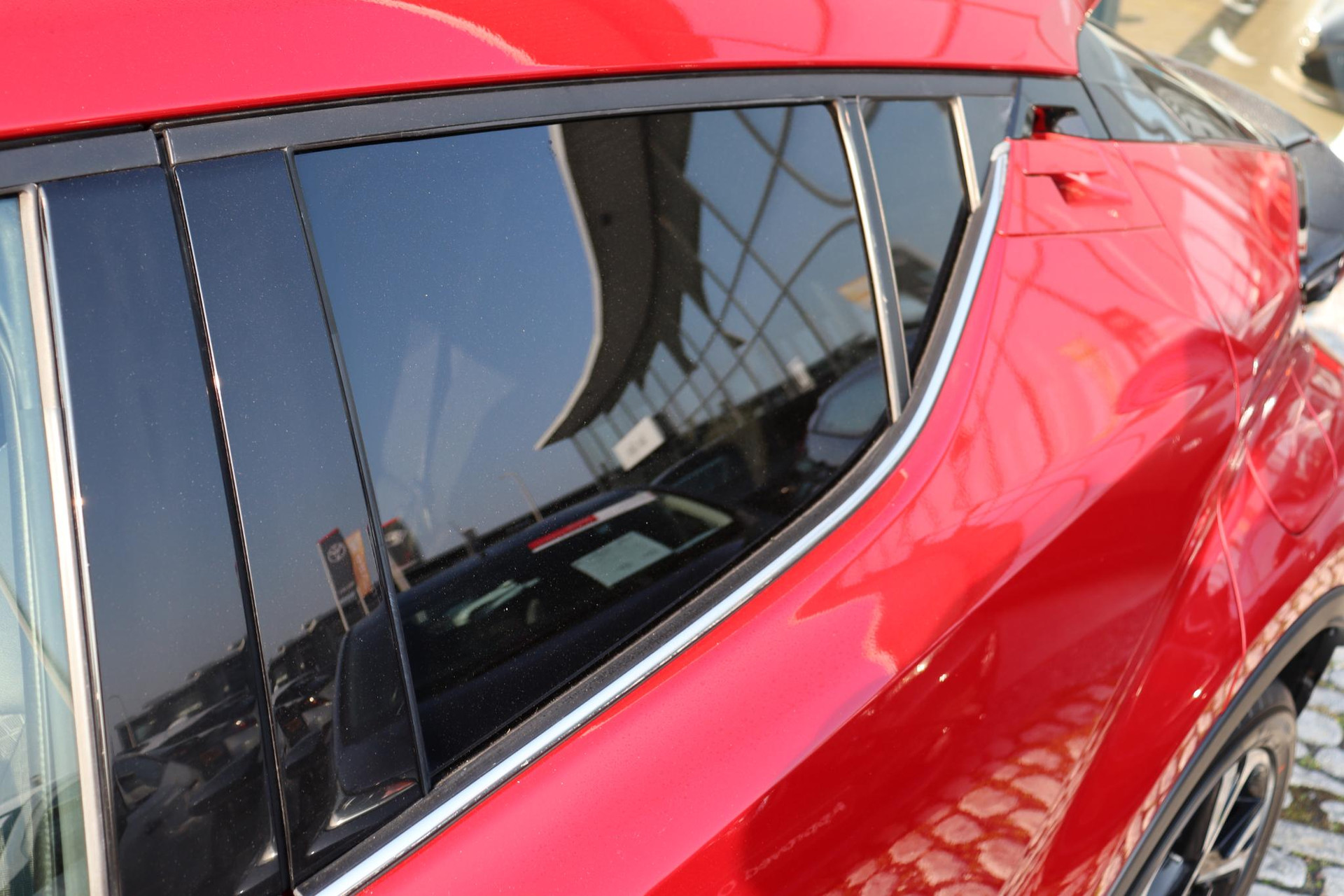 Jonge CHR 1.8 Hybrid Style Limited in de kleur Emotional red parelmoerlak. Deze Coupe High Rider is voorzien van Stoelverwarming, navigatie systeem, Blind spot monitor, parkeersensoren voor en achter, Adaptive cruise control, deels lederen bekleding, Apple carplay, Android auto en meer!