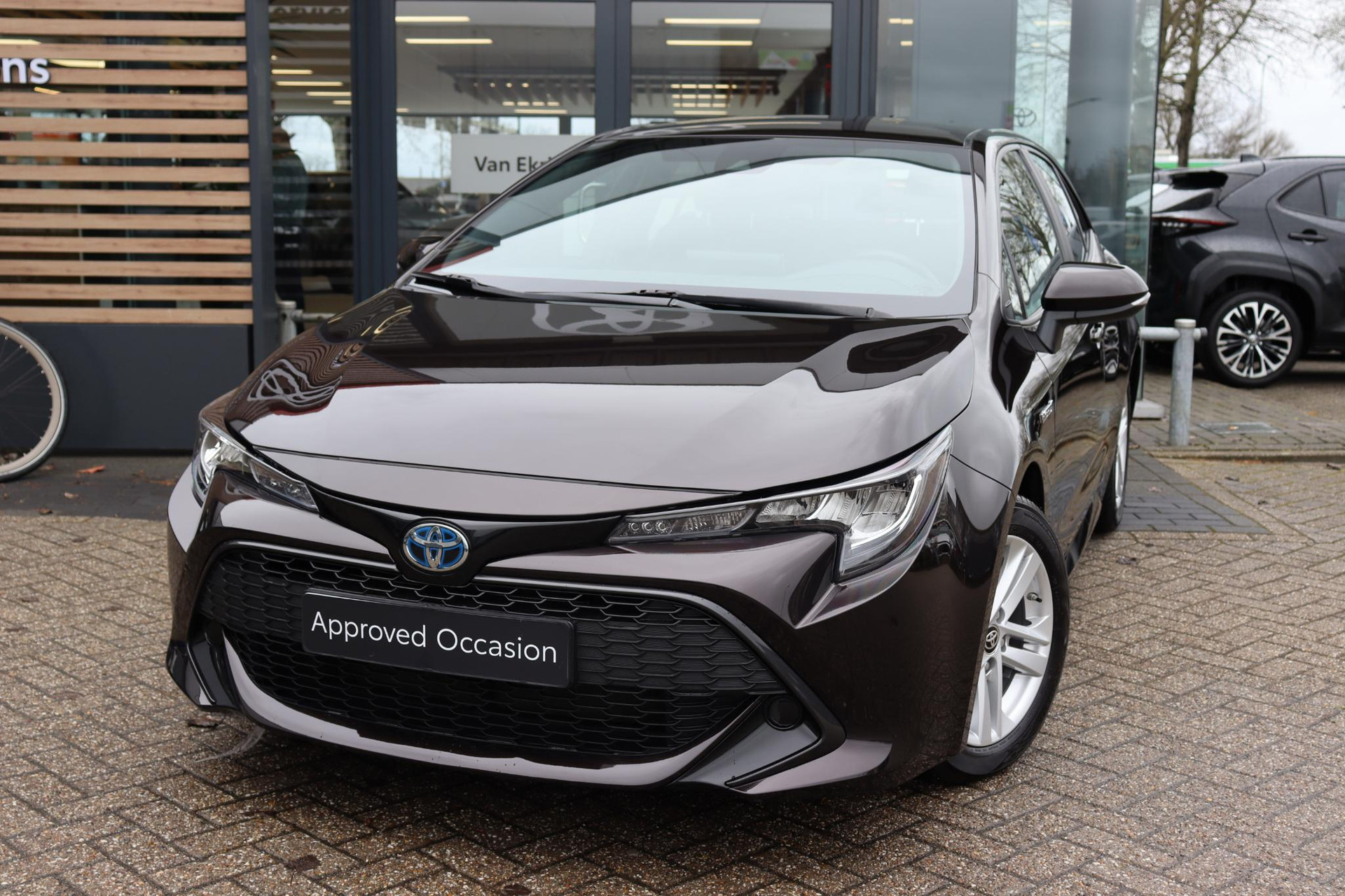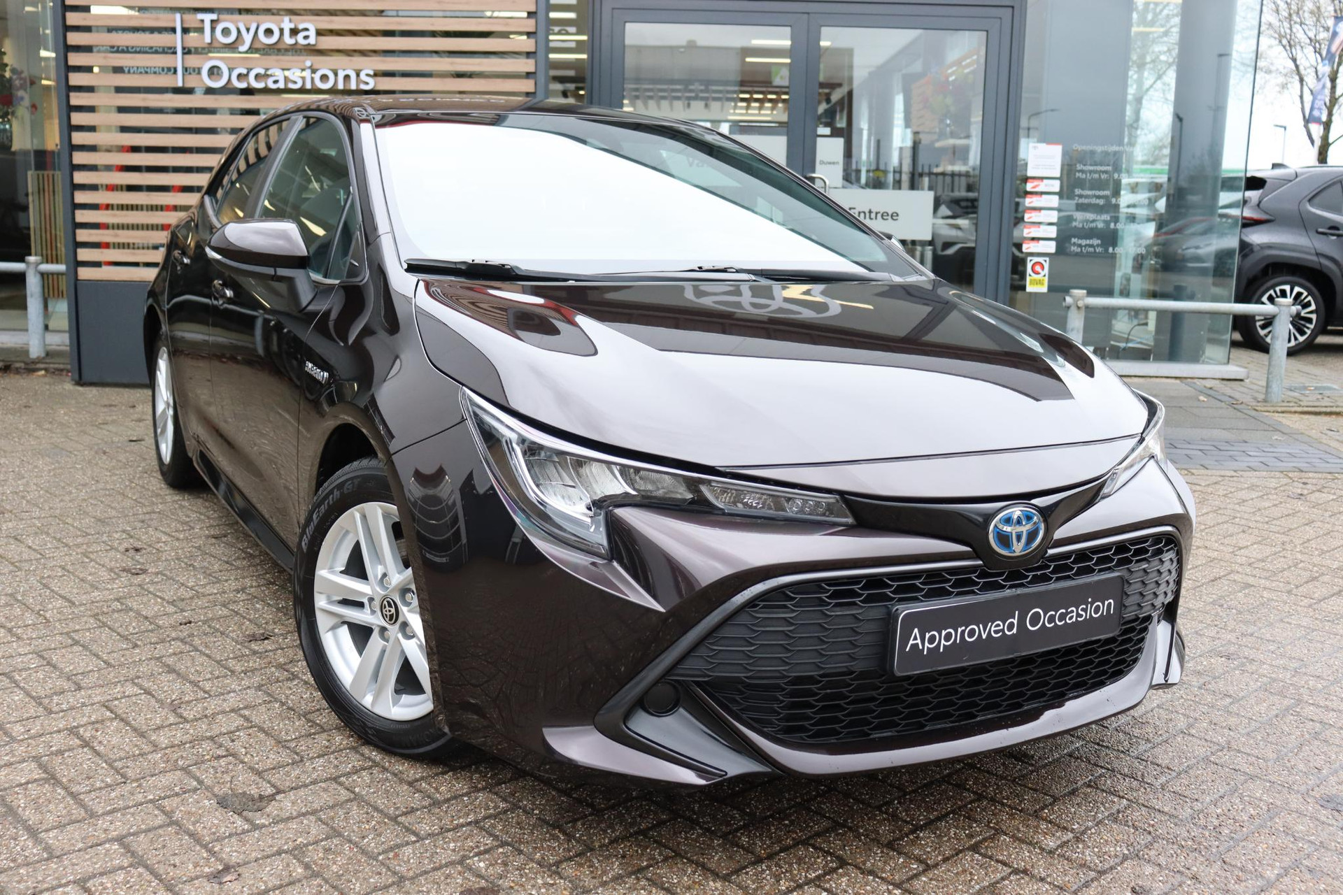 Corolla 1.8 Hybrid in de kleur Phantom Brown metallic. De Toyota Corolla is onder andere voorzien van: Startknop, Parkeerhulpcamera, Cruise control, Automatische verlichting en ruitenwissers, android auto, apple carplay, adaptieve cruise control en meer!