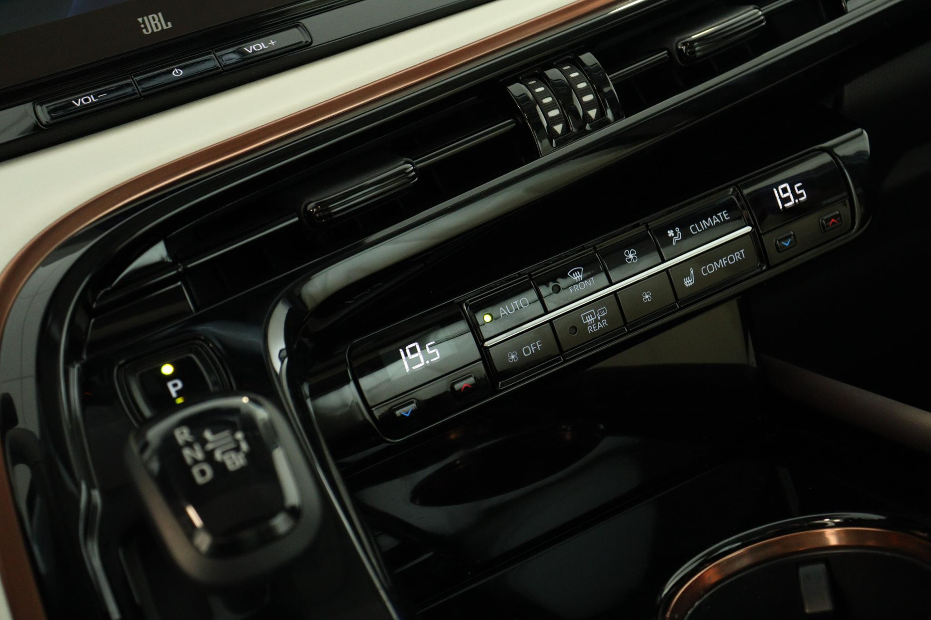 Binnen in de Mirai is het een en al luxe. Het interieur is prachtig afgewerkt met alle oog voor detail. Natuurlijk is deze Mirai voorzien van een 360graden parkeercamera, digitale achteruitkijkspiegel, JBL audio met 14 speakers, het nieuwste 12,3" Toyota navigatie met draadloze Apple Carplay en Android Auto, Adaptieve Cruise Control, Panoramadak, Head Up display van maar liefst 10", Elektrisch bedienbare voorstoelen met geheugen functie voor de bestuurder, stoel verwarming en koeling voor de voorstoelen maar ook op de achterbank heb je verwarming én koeling die je kunt bedienen vanaf de armsteun, waar je ook de radio en de airconditioning mee kan regelen.