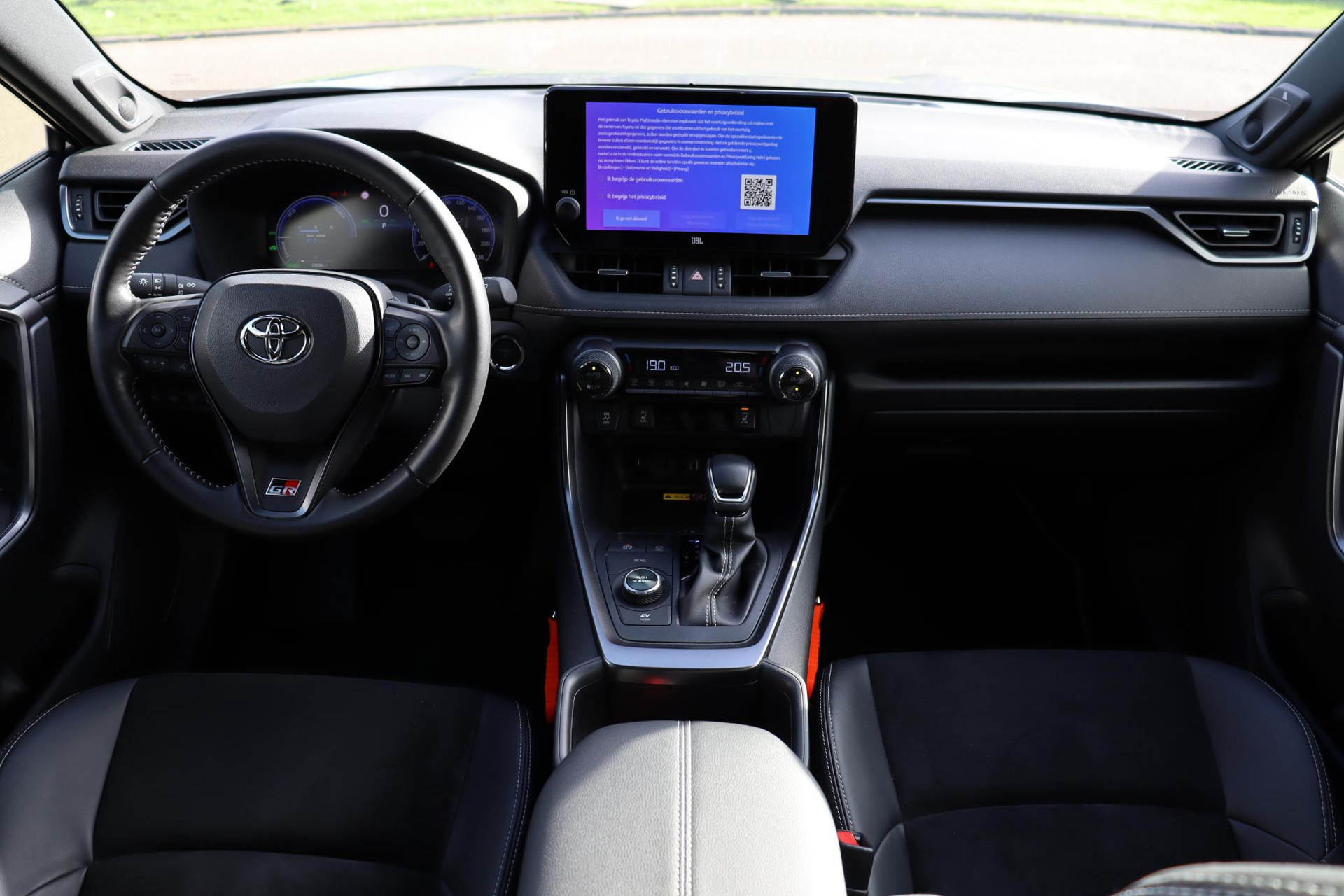 Toyota RAV4 2.5 Hybrid AWD GR Sport in de prachtige kleur Zircon zilver met een Zwart dak. Deze RAV is door ons nieuw geleverd en onderhouden! Deze auto is ook nog eens rijk uitgevoerd! Zo heeft de auto een GR sport plus pack ( JBL Audio , 360 Camera, Draadloos opladen, Stuurverwarming, Ruitenwisser verwarming ) Dodehoek Detectie, Parkeercamera, Apple carplay / Android auto, Parkeersensoren voor / achter En nog veel meer!